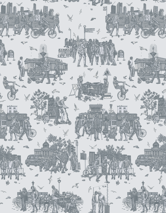 Liverpool Toile Kensington Blue Wallpaper Sample